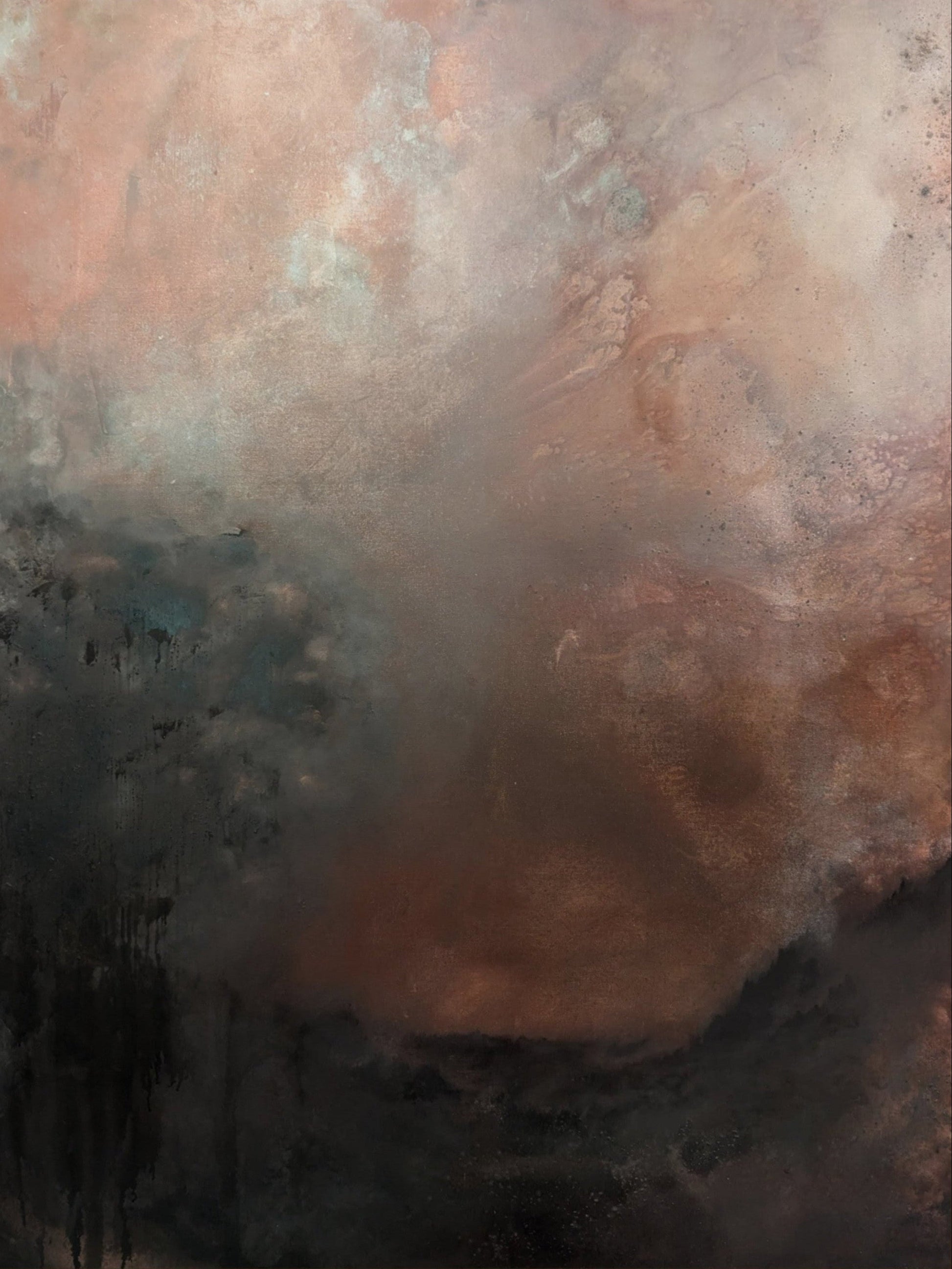 "Afterglow", acrylic, India ink and copper on canvas, 60" H x 48" W