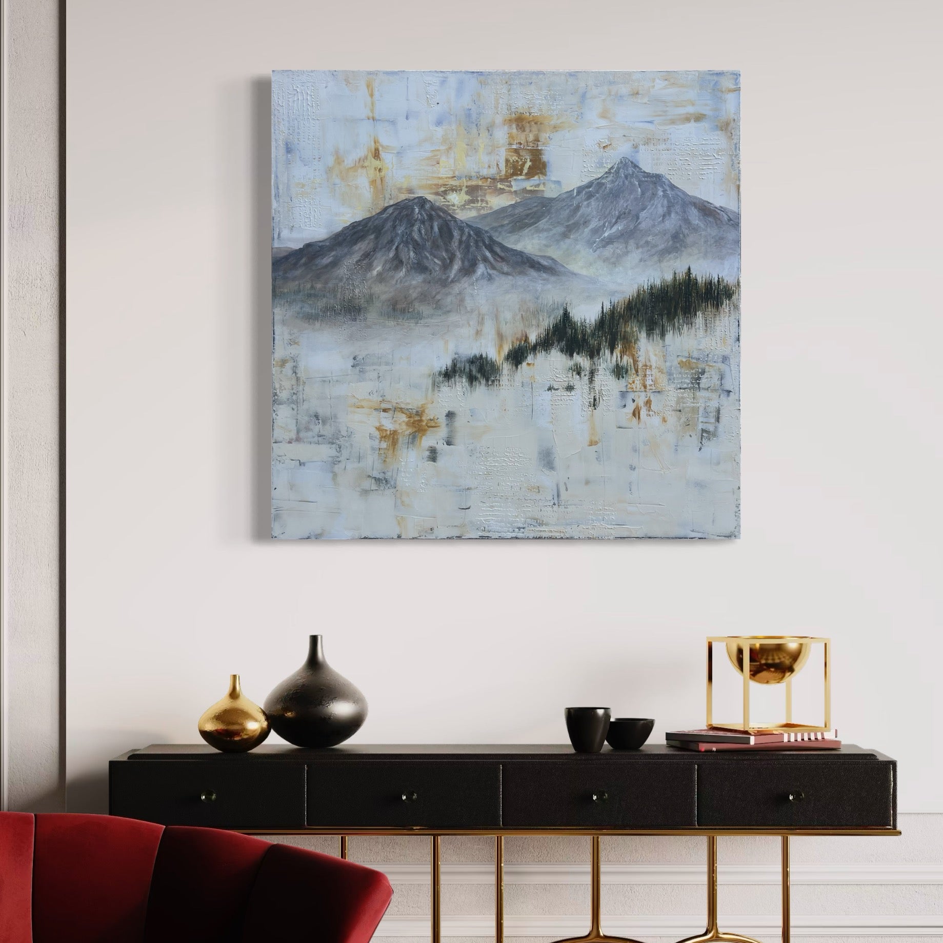 "Beyond the Peaks", mixed media on canvas, 36" H x 36" W