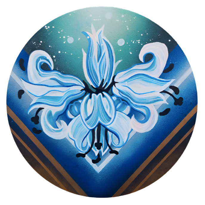 "Equanimity" aerosol on wood panel, 12" round diameter
