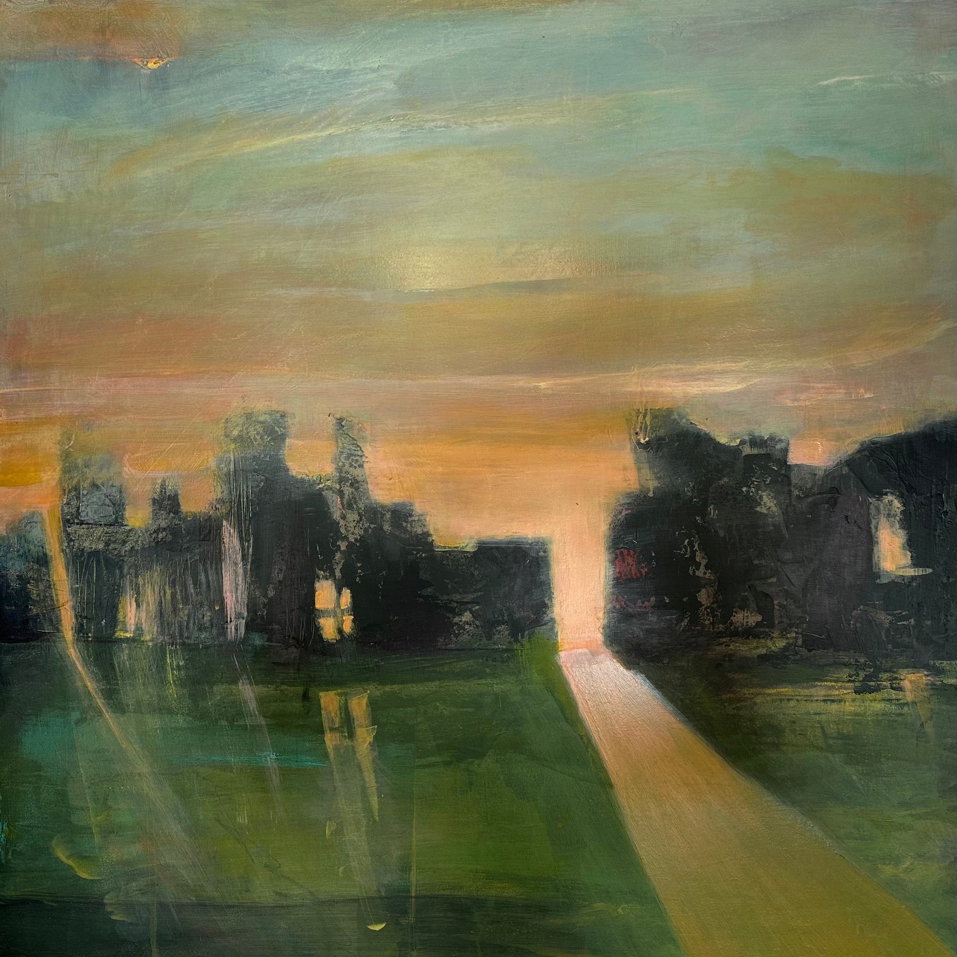 "Introspection", mixed media on cradled panel, 24" H x 24" W