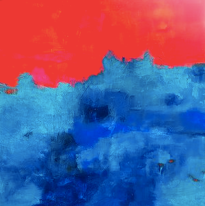 "Lipstick Sunset", acrylic on canvas, 36" H x 36" W, framed