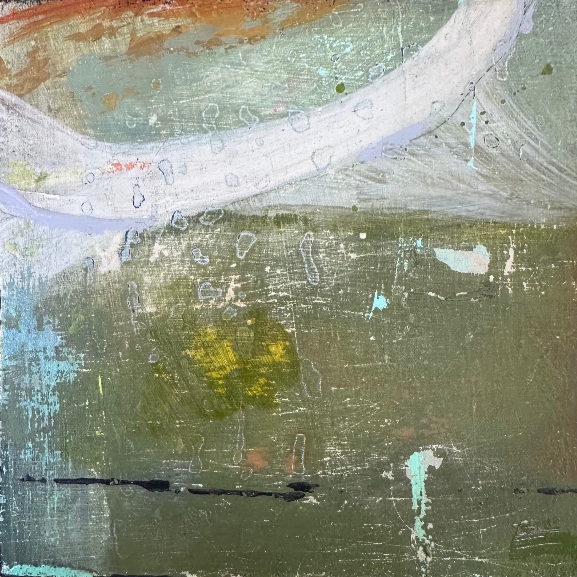 "Overlap", mixed media on panel, " H x 5" W