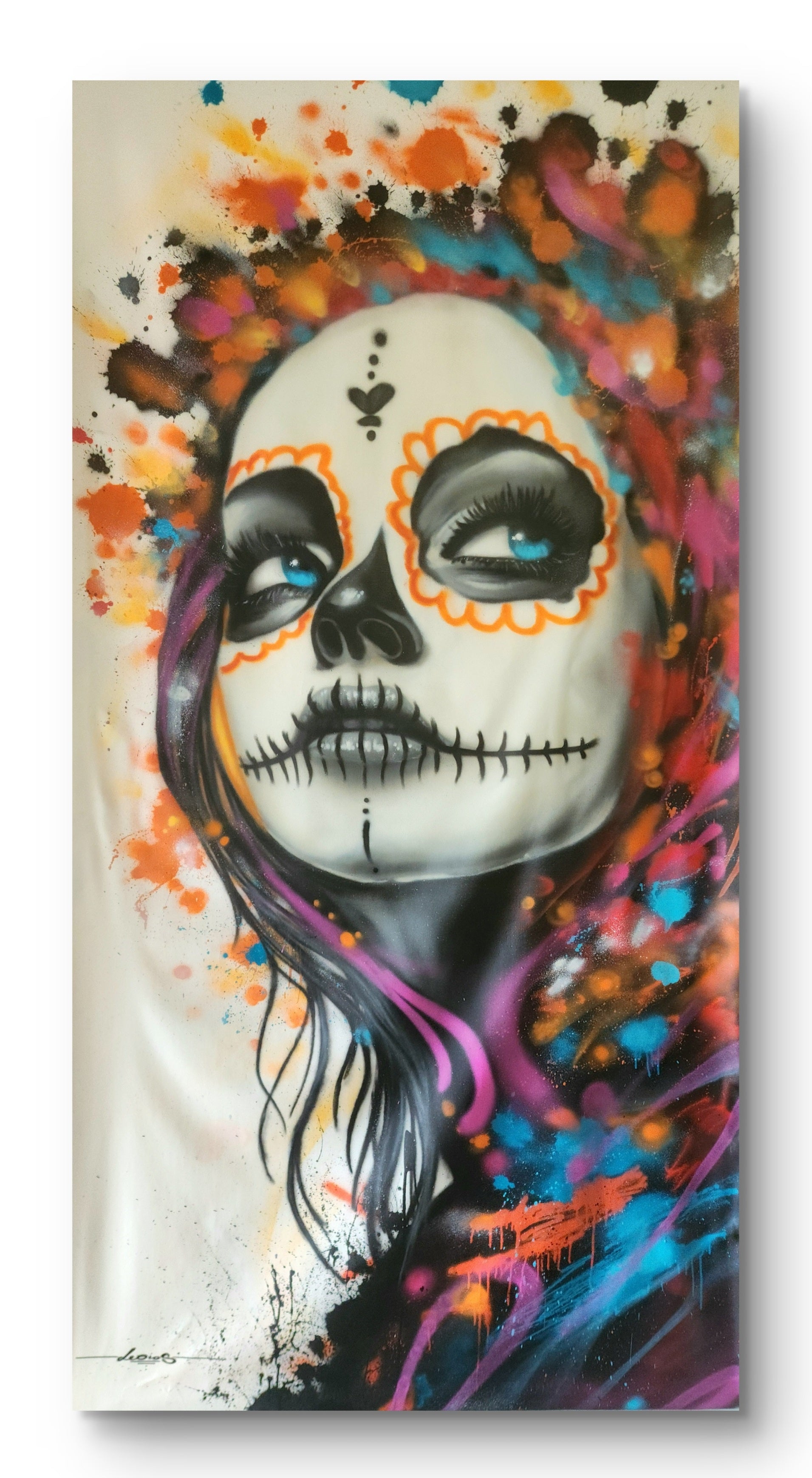 "Pilar", aerosol on canvas scroll, 96" H x 48" W