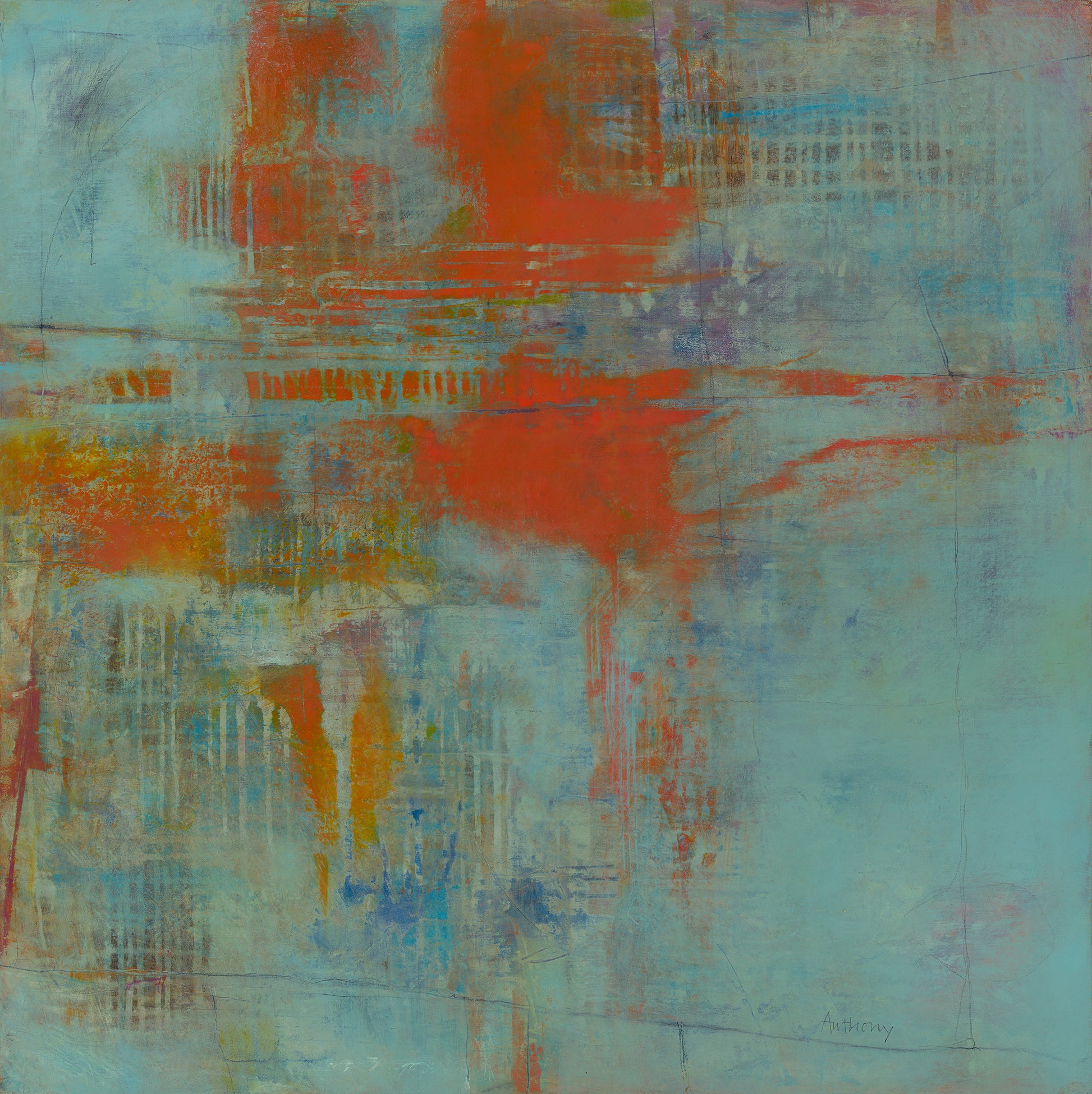 "Scaffold", oil and cold wax on wood panel, 30" H x 30" W framed