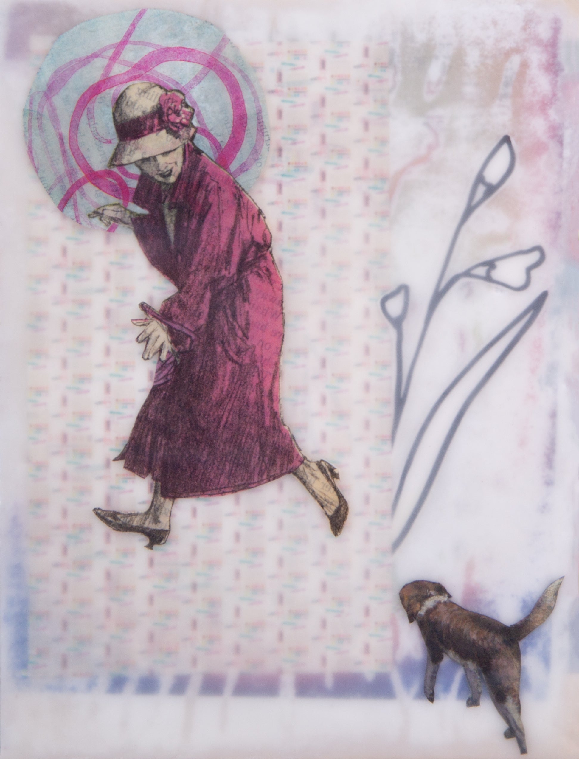 "Walk With Me", encaustic collage, 7" H x 5" W